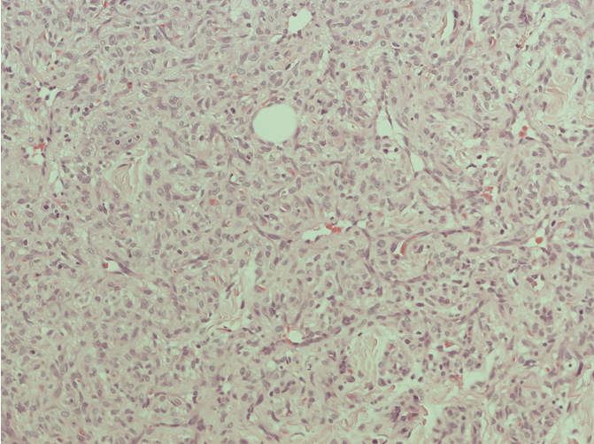 Figure 1: Hematoxylin and eosin stain (x100) tumor.