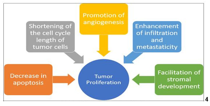 Initial studies conducted for exploring the mechanism of action of estrogen on target tissues, suggested that estrogen binds to a protein in its target cell and has cascading actions thereafter. Elwood Jensen played a pivotal role in the discovery of estrogen receptor and demonstrated that estrogen-bound receptors were able to migrate to the nucleus, thus stimulating gene transcription. Each hormone exerts their action by binding to specific receptors, which in turn activate transcriptional processes and/or signaling events that result in the control of gene expression [6],[7]. Research has linked estrogen to several major estrogen-dependent tumors, such as breast cancer, endometrial cancer, and ovarian cancer (Figure 4). Additionally, some brain tumors, including meningioma, pituitary adenoma, and glioblastoma tumors, have been reported that they are not only associated with sex hormones but also enlarge significantly during pregnancy [8],[9],[10]. This suggests that tumor growth in the presence of elevated estrogen levels may not be limited to estrogen-receptive tumors. Although there is an existing link between breast cancer and pregnancy, Bradley highlighted the point that tissues in the head and neck region lack these hormonal receptors. He suggested that the altered immunologic mechanism designed for fetal survival, may be responsible for advancement of tumor or malignancy [11].