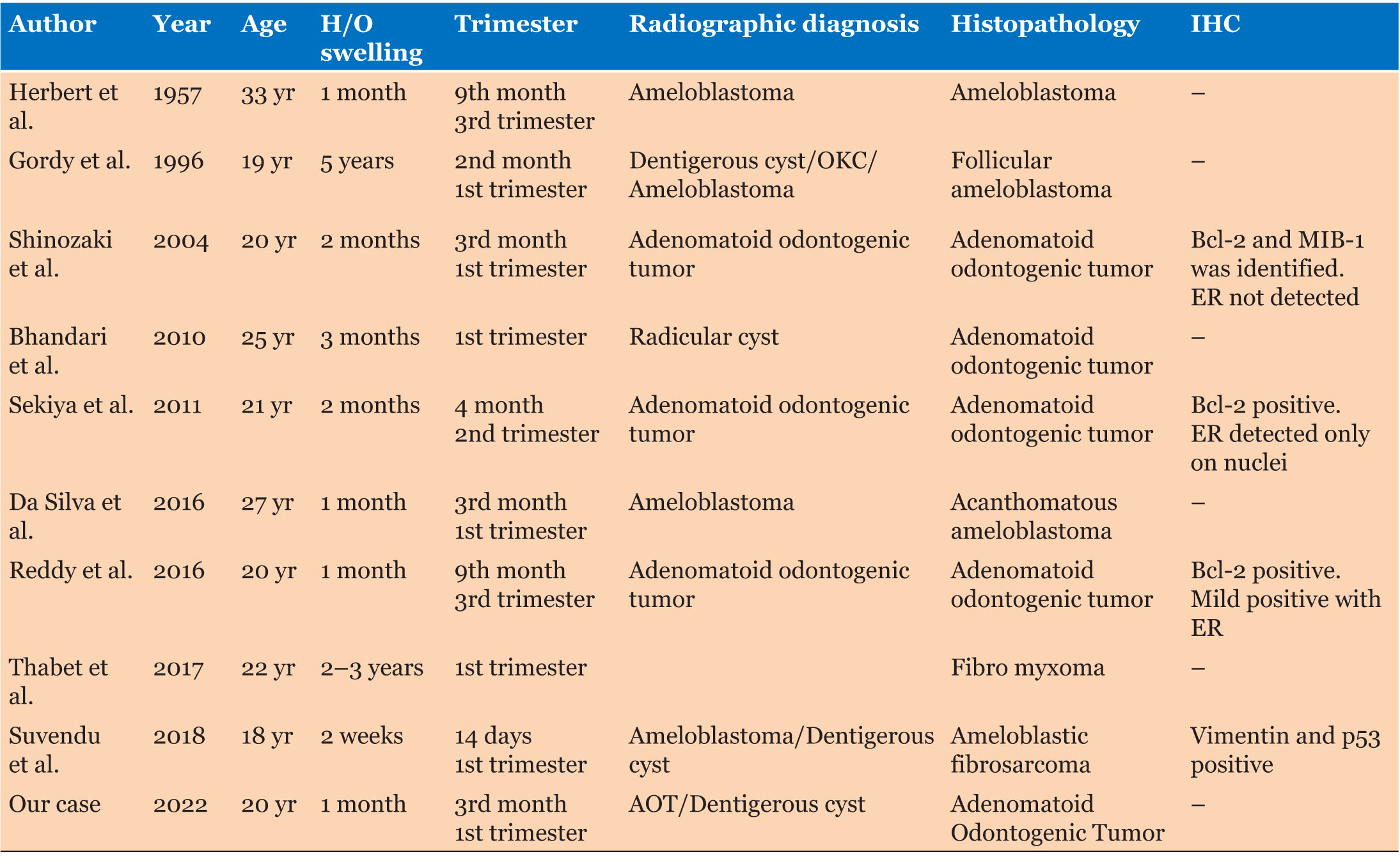 Further research with IHC as a diagnostic modality needs to be considered in all such cases to accumulate strong evidence correlating pregnancy to odontogenic tumors. Exploring the presence of hormonal receptors in odontogenic epithelium, oral epithelium, and odontogenic lesions can pave the way for understanding gender predilection of odontogenic pathologies.